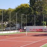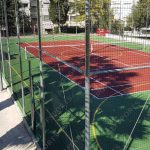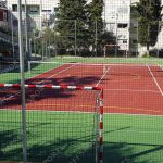 Fornecimento e aplicação de piso (Resina sintética) POLYSPORT “In Situ” com marcação de linhas de futsal, andebol, basquetebol e ténis. Fornecimento de equipamentos desportivos e redes de vedação.