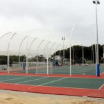 Fornecimento e montagem de – 2 Balizas de andebol em ferro redondo zincado + redes. 4 Postes de basquetebol AFF c/ avanço de 1.8mt e altura de 3,05m.
