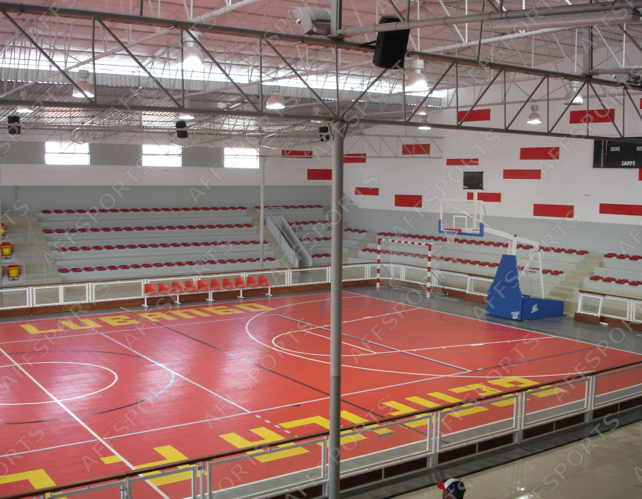 material: Bancadas e Bancos de Suplentes, Basquetebol, Equipamentos desportivos, Futsal, Hoquei, Instalações Desportivas, Marcadores Electrónicos, Piso, Piso Modular, Piso Modular Interior, Redes de VedaçãoLocal: Angola