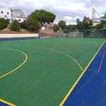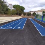 Fornecimento e aplicação de piso (Resina sintética) POLYSPORT “In Situ” com marcação de linhas de futsal, andebol, basket, voleibol e pista de atletismo.