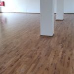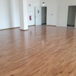 Fornecimento e instalação de piso em madeira nobre, assentamento de rodapé ventilado e montagem de “mata-juntas” em aço-inox.
