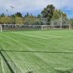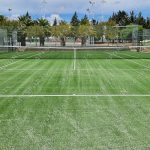 Instalação de piso em relva sintética e aplicação das marcações de linhas conforme a certificação International Tennis Federation, classe 3.