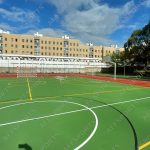 Fornecimento e aplicação de piso (Resina sintética) Polysports “In Situ”, com marcação de linhas das diferentes modalidades desportivas.