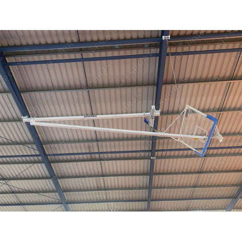 Sistema de suspensão por 4 cabos de aço, c/ sistema regulação no braço (2 dos cabos cruzados para estabilização/nivelação de tabela).