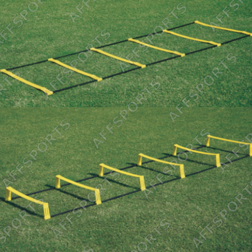 Escada de agilidade com novo design, feita de plástico PVC leve e durável. Com degraus dobráveis, que permitem usá-la como uma escada plana ou como barreiras elevadas de 10 cm.