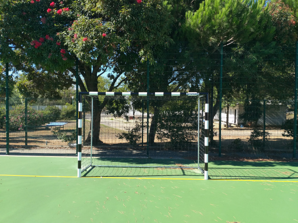 Fornecimento e montagem de equipamento desportivo, balizas de futsal, postes de basquetebol e postes de voleibol.