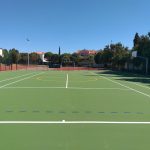 pisos em resina com marcação de linhas de jogo, basquetebol e futsal, ténis e voleibol.