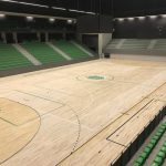 Lumiar – Pavilhão João Rocha Fornecimento e aplicação de piso em madeira. Pinturas de linhas. Fornecimento e colocação de tabelas de hóquei com sistema hidráulico automático. material: Piso Madeira Local: Lisboa, Portugal Data: 2017